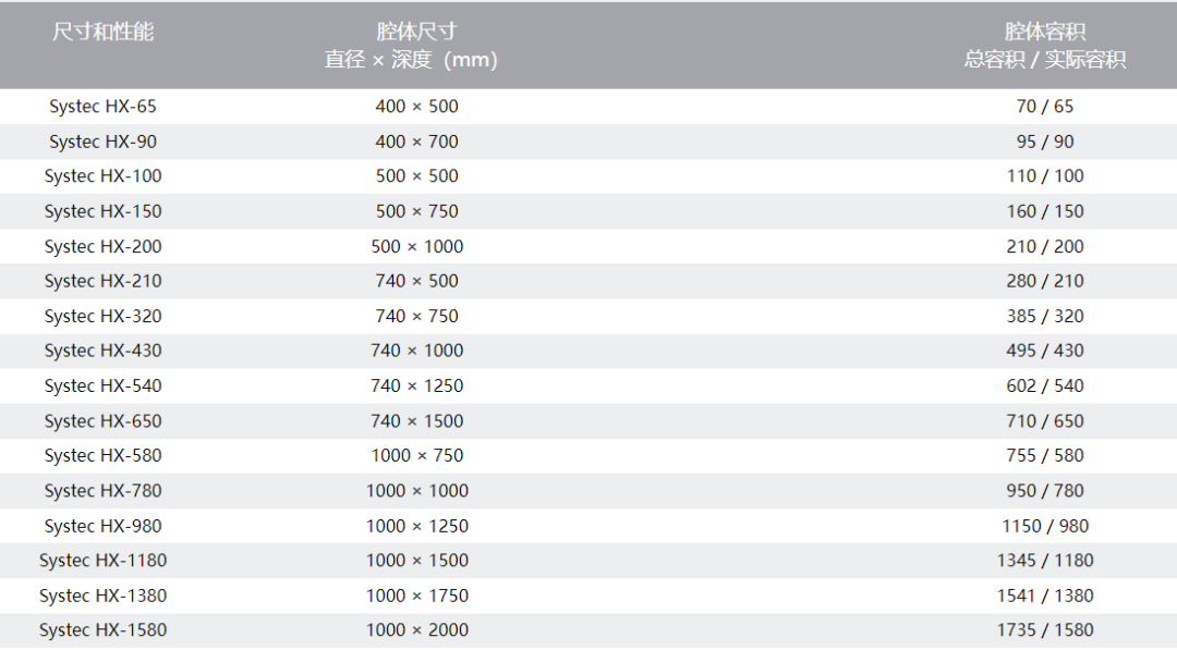 有 16 種尺寸可供選擇,腔體容積從 65 L 到 1580 L。所有的功能選項都可以在這個型號上加裝,不僅擁有較大容量的裝載空間,此型號的滅菌器擁有十分緊湊的體積和非常輕的重量。